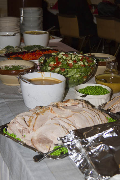 Ennen ruokailua oli vielä vuorossa paikallisen improvisaatioteatteri Nasakkan vuoro viihdyttää juhlaväkeä. Huumori on tunnetusti vaikea laji. Siinä missä osa yleisöstä nauroi vedet silmissä ja poskilihakset krampaten esitystä, toiset katsoivat paheksuen nuorten miesten välillä pikkutuhmaakin heittäytymistä aiheesta toiseen.